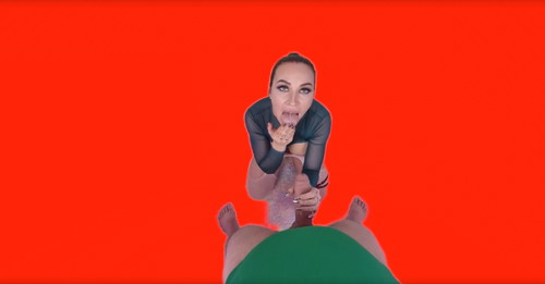 Melissa Stratton, the stunning brunette bombshell with her voluptuous big tits, kneels before you in a slutty outfit that hugs her curves, complete with fishnet stockings and towering high heels. She teases her sexy body, rubbing it sensually against you, her firm ass grinding provocatively as she whispers, “Do you want to play with me?” A sharp slap echoes as she smacks her own cheek, drawing your eyes to her hardening nipples peeking from her top. She pulls her massive breasts free, pressing them close to your face, moaning softly, “Suck on them just like that,” her voice dripping with lust while you oblige, feeling her body quiver under your touch.